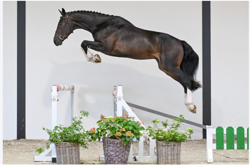 Dam Mia Levone (Fidelgo du Houssoit x Ogano Sitte) is six years old and has competed at 1.20m level. She also performed well in the Belgian Cycle for five-year-olds.